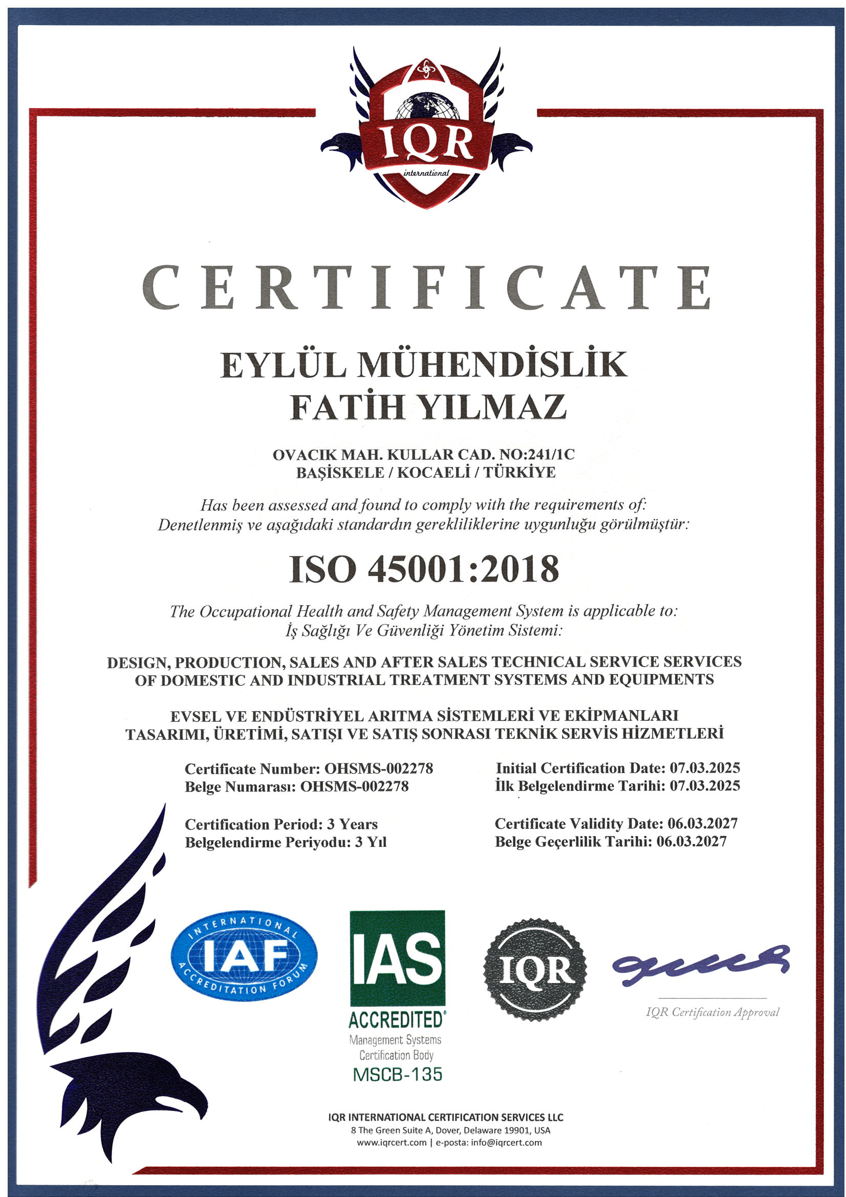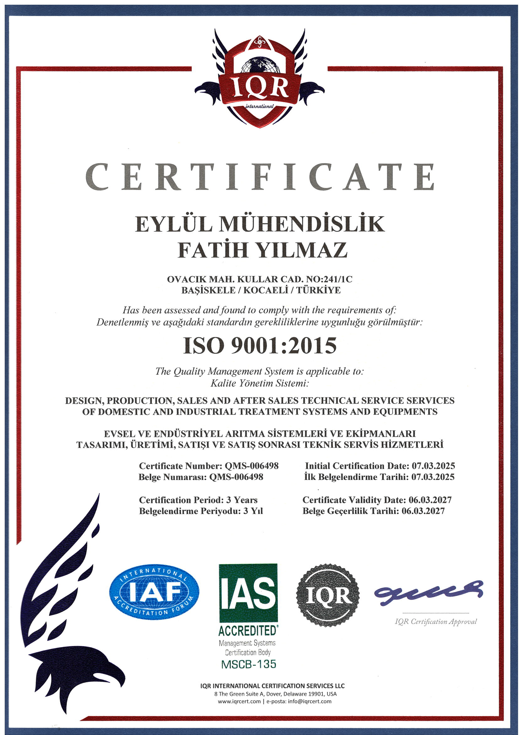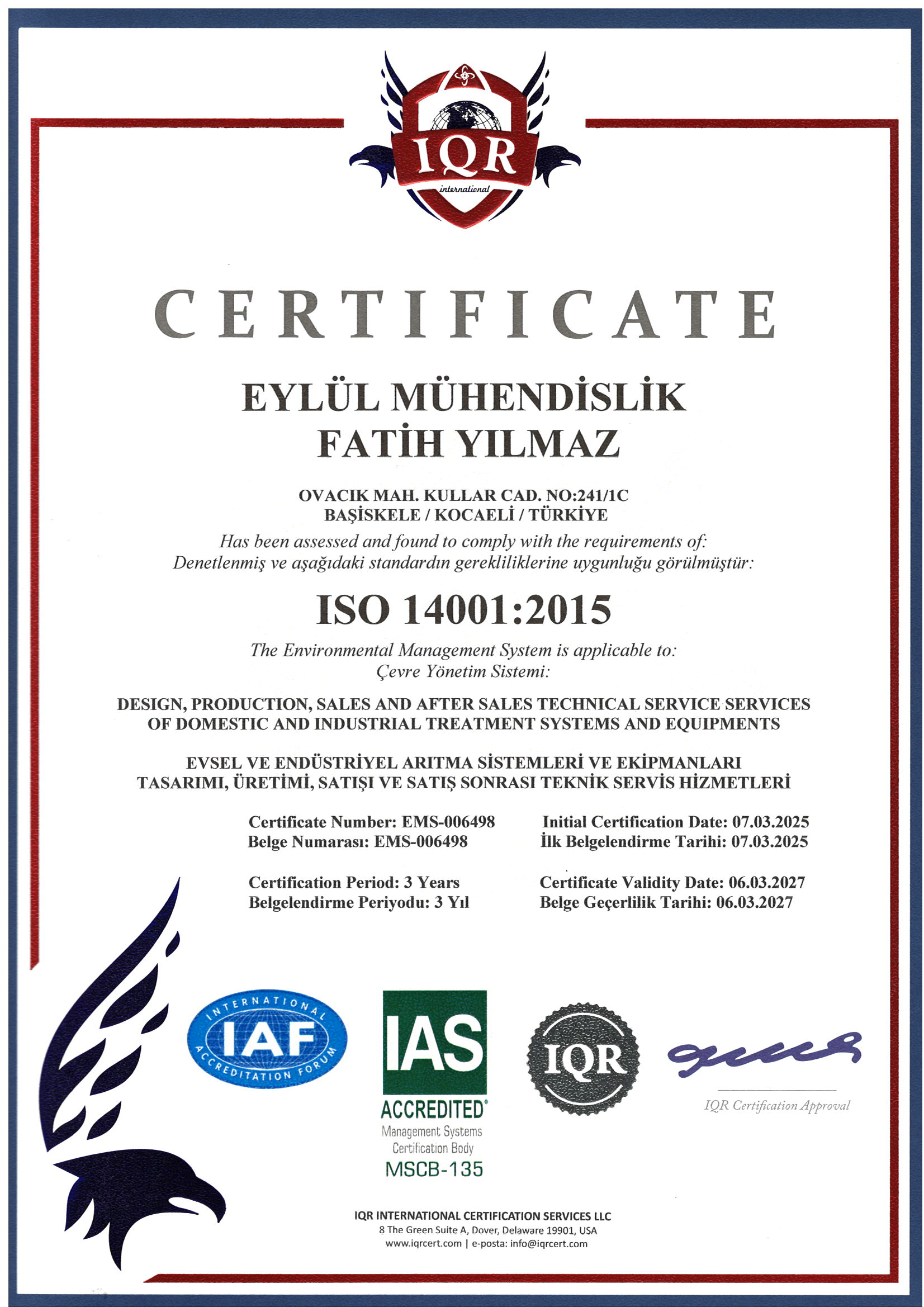 Kurulduğumuz günden bu yana su arıtma sektöründe yenilikçi ve sürdürülebilir çözümler sunuyor, uzman kadromuz ve sektördeki deneyimimizle bütünleşmiş mühendislik hizmetleri sağlıyoruz. Endüstriyel ve evsel atıksu arıtma sistemlerinin kurulumu, arıtma ekipmanları üretimi ve proje bazlı özel imalat konularında faaliyet gösteriyor, tasarım, üretim, montaj ve işletme süreçlerini bütünsel bir bakış açısıyla yöneterek, müşterilerimize kapsamlı ve entegre çözümler sunuyoruz.